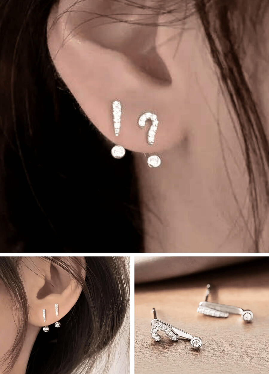 Express yourself cleverly and in style with this minimalist duo set with tiny crystals. Each pair includes a combination of one question mark and one exclamation mark, but to maximize your options for self-expression, we highly recommend ordering two!