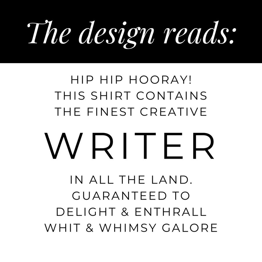 I bet you know someone who deserves to wear this beautiful shirt. Maybe it's your favorite author, your writing buddy, or that special someone you'd like to encourage. Or maybe it's you!We are in love with the rich hues of these garment-dyed unisex tees from Comfort Colors. It just might be the perfect combination of cozy softness and durability. And they get softer with every wash!Made with only 100% ethically grown & harvested cotton.If you're like me, you may be struggling to choose your favorite hue. So why not pick a few, or even all five? After all, what better way to fill out your writer's wardrobe?Available in five great colors: Sage, Grey, Graphite, Blue Jean, and Berry.Small-XL | $29. + shipping