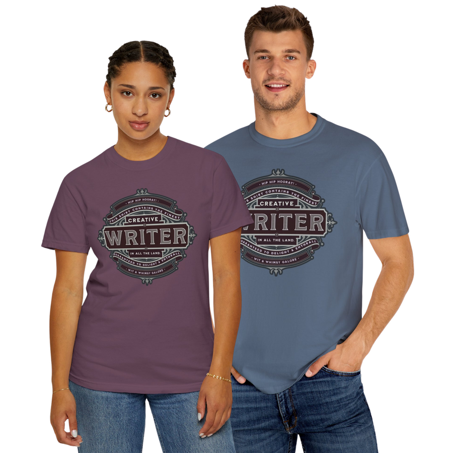 I bet you know someone who deserves to wear these beautiful and inspiring shirts. Maybe it's your favorite author, your writing buddy, or that special someone you'd like to encourage. Or maybe it's you!We are in love with the rich hues of these garment-dyed unisex tees from Comfort Colors. It just might be the perfect combination of cozy softness and durability. And they get softer with every wash!Made with only 100% ethically grown & harvested cotton.If you're like me, you may be struggling to choose your favorite hue. So why not pick a few, or even all five? After all, what better way to fill out your writer's wardrobe?Small-XL | $29. + shipping
