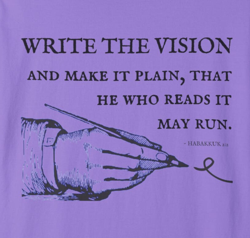 Habukkuk 2:2 is one of the most loved scriptures for Christian writers everywhere. Truly, it's a powerful exhortation for anyone carrying a message from God.We are in love with the rich hues of these 100% cotton tees from Comfort Colors. It just might be the perfect combination of cozy softness and durability. Better yet, they are made with only 100% ethically grown & harvested cotton.This design features a BLACK & COBALT DESIGN, available in Flo Blue, Violet, Blossom, Ivory, and White.Our white design is featured in the listing below.Small-XL | $29. + shipping